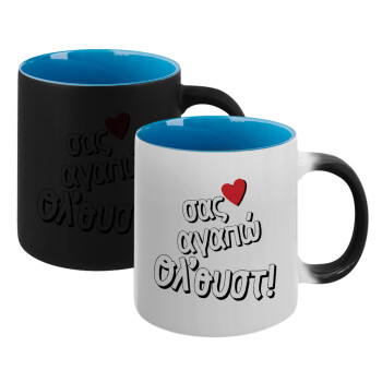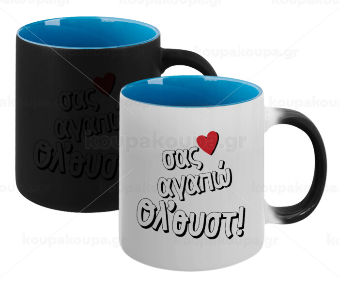Σας αγαπώ όλ'ουστ!, Κούπα Μαγική εσωτερικό μπλε, κεραμική 330ml που αλλάζει χρώμα με το ζεστό ρόφημα