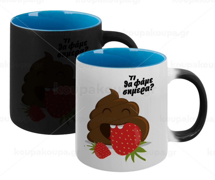 Τι θα φάμε σημερα???, Κούπα Μαγική εσωτερικό μπλε, κεραμική 330ml που αλλάζει χρώμα με το ζεστό ρόφημα