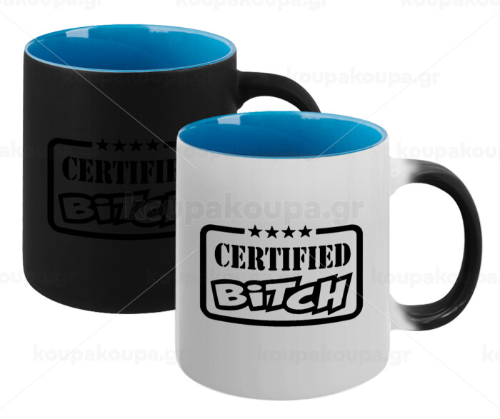 Certified Bitch, Κούπα Μαγική εσωτερικό μπλε, κεραμική 330ml που αλλάζει χρώμα με το ζεστό ρόφημα