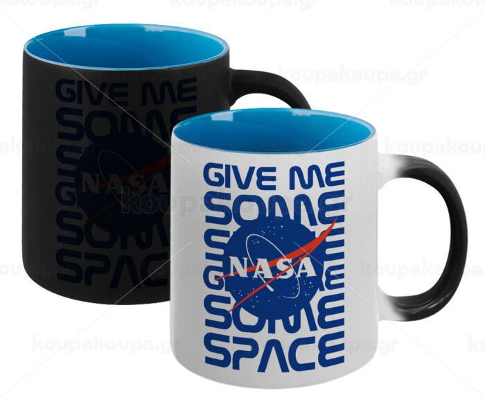 NASA give me some space, Κούπα Μαγική εσωτερικό μπλε, κεραμική 330ml που αλλάζει χρώμα με το ζεστό ρόφημα