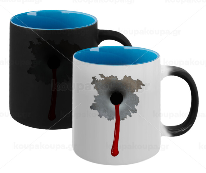 Bullet holes, Κούπα Μαγική εσωτερικό μπλε, κεραμική 330ml που αλλάζει χρώμα με το ζεστό ρόφημα