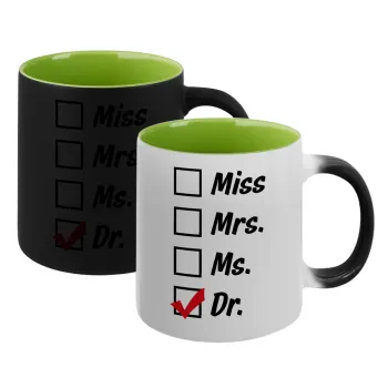 Miss, Mrs, Ms, DR, Κούπα Μαγική εσωτερικό πράσινο, κεραμική 330ml που αλλάζει χρώμα με το ζεστό ρόφημα