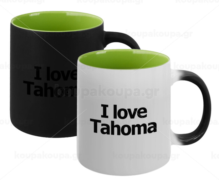 I love Tahoma, Κούπα Μαγική εσωτερικό πράσινο, κεραμική 330ml που αλλάζει χρώμα με το ζεστό ρόφημα