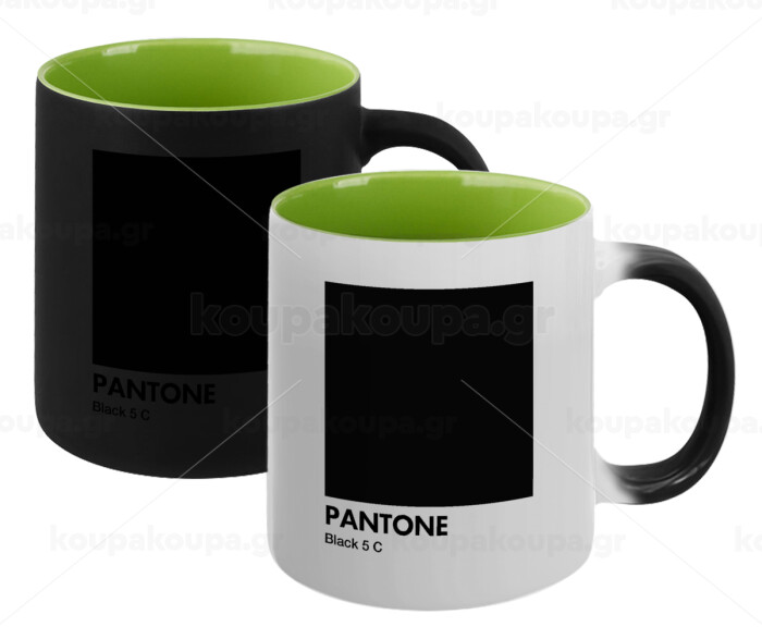 Pantone Black, Κούπα Μαγική εσωτερικό πράσινο, κεραμική 330ml που αλλάζει χρώμα με το ζεστό ρόφημα