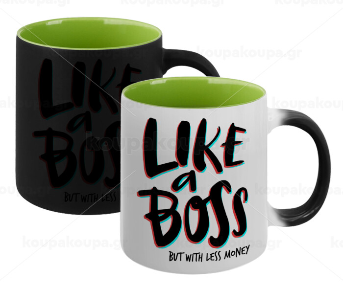 Like a boss, but with less money!!!, Κούπα Μαγική εσωτερικό πράσινο, κεραμική 330ml που αλλάζει χρώμα με το ζεστό ρόφημα