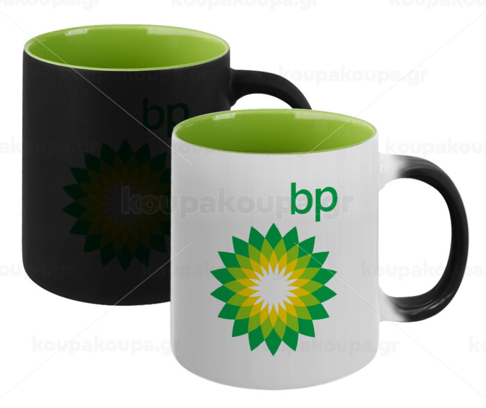 Πρατήριο καυσίμων BP, Κούπα Μαγική εσωτερικό πράσινο, κεραμική 330ml που αλλάζει χρώμα με το ζεστό ρόφημα