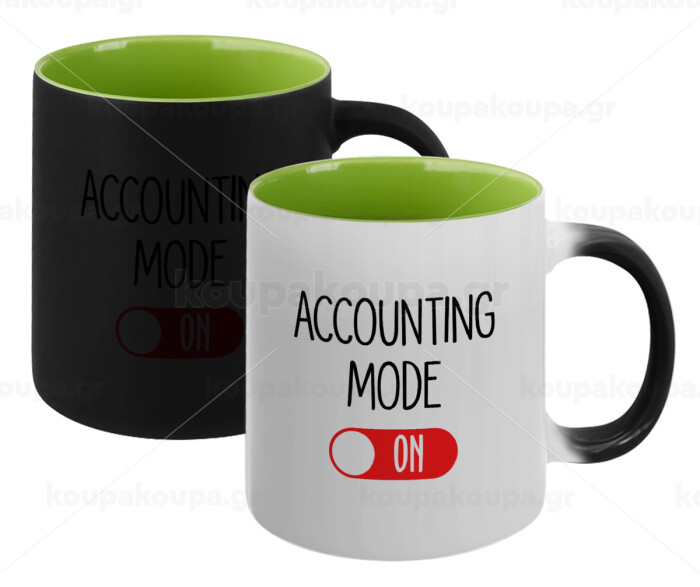 ACCOUNTANT MODE ON, Κούπα Μαγική εσωτερικό πράσινο, κεραμική 330ml που αλλάζει χρώμα με το ζεστό ρόφημα