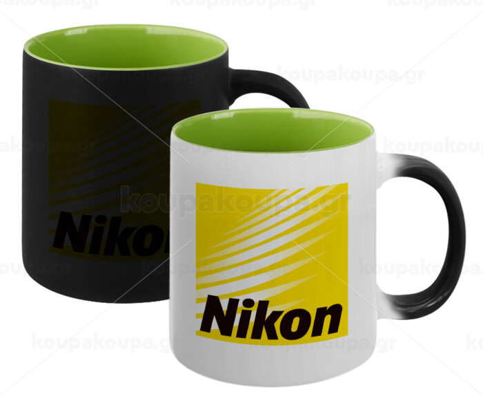 Nikon, Κούπα Μαγική εσωτερικό πράσινο, κεραμική 330ml που αλλάζει χρώμα με το ζεστό ρόφημα