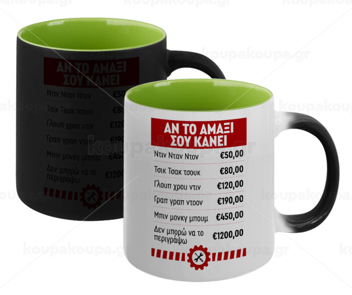 Annoying Noise in Car, Κούπα Μαγική εσωτερικό πράσινο, κεραμική 330ml που αλλάζει χρώμα με το ζεστό ρόφημα