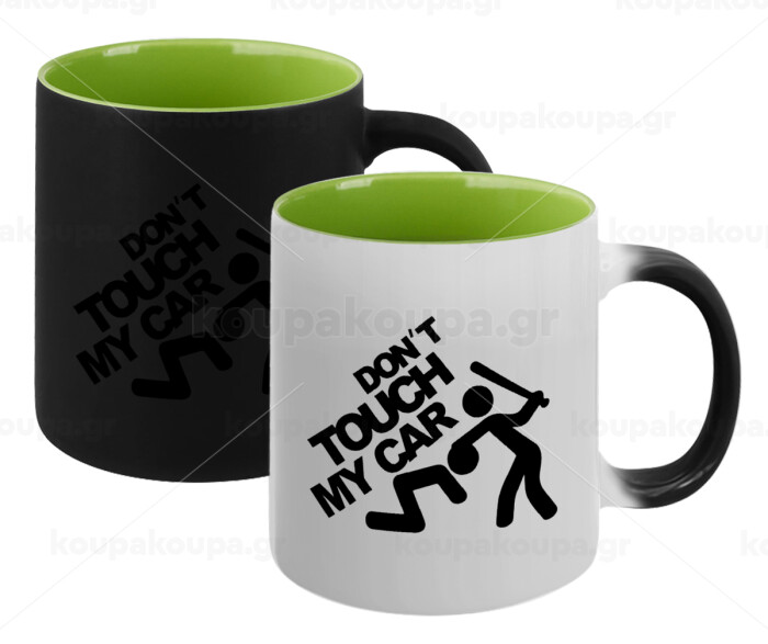 Don't touch my car, Κούπα Μαγική εσωτερικό πράσινο, κεραμική 330ml που αλλάζει χρώμα με το ζεστό ρόφημα