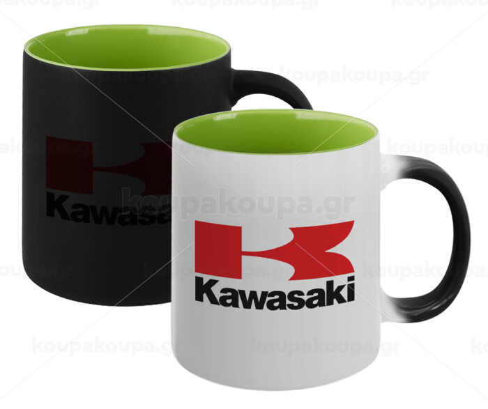 Kawasaki, Κούπα Μαγική εσωτερικό πράσινο, κεραμική 330ml που αλλάζει χρώμα με το ζεστό ρόφημα