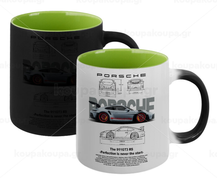 Porsche, Κούπα Μαγική εσωτερικό πράσινο, κεραμική 330ml που αλλάζει χρώμα με το ζεστό ρόφημα