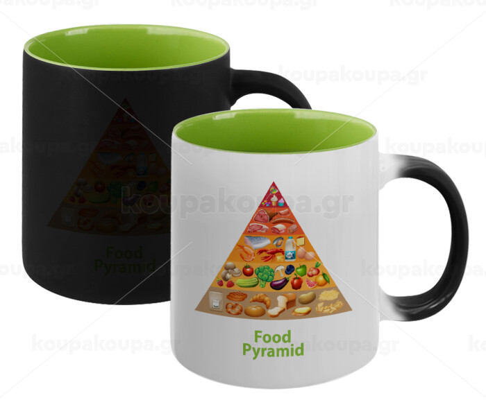 Food pyramid chart, Κούπα Μαγική εσωτερικό πράσινο, κεραμική 330ml που αλλάζει χρώμα με το ζεστό ρόφημα
