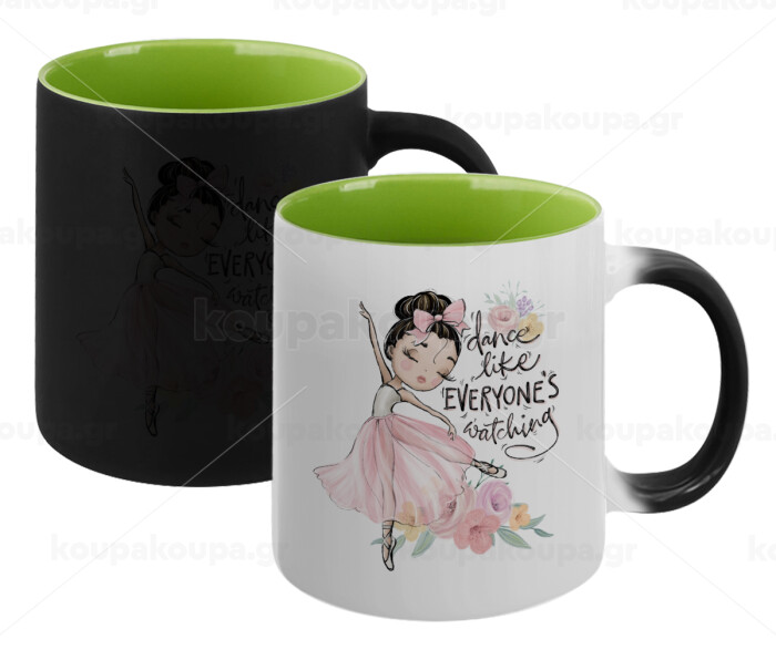 Dance Like everyone's watching, Κούπα Μαγική εσωτερικό πράσινο, κεραμική 330ml που αλλάζει χρώμα με το ζεστό ρόφημα