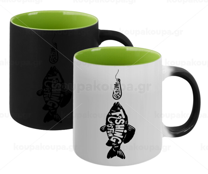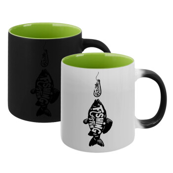 Fishing is fun, Κούπα Μαγική εσωτερικό πράσινο, κεραμική 330ml που αλλάζει χρώμα με το ζεστό ρόφημα