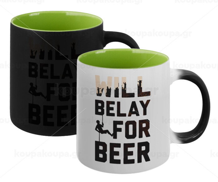 Will Belay For Beer, Κούπα Μαγική εσωτερικό πράσινο, κεραμική 330ml που αλλάζει χρώμα με το ζεστό ρόφημα