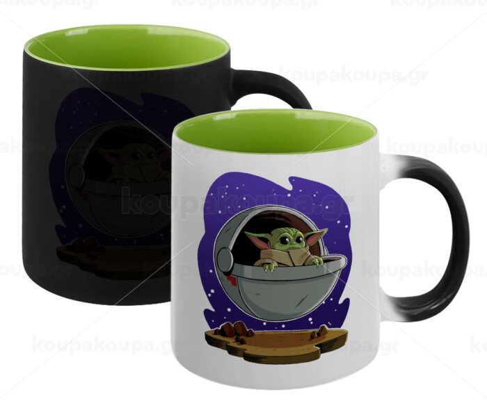 Baby Yoda mandalorian, Κούπα Μαγική εσωτερικό πράσινο, κεραμική 330ml που αλλάζει χρώμα με το ζεστό ρόφημα