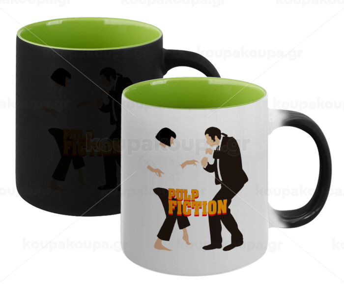 Pulp Fiction dancing, Κούπα Μαγική εσωτερικό πράσινο, κεραμική 330ml που αλλάζει χρώμα με το ζεστό ρόφημα