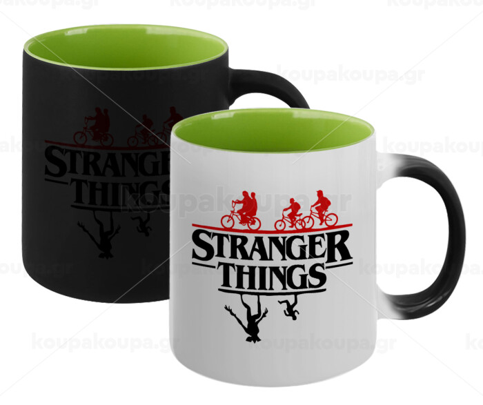 Stranger Things upside down, Κούπα Μαγική εσωτερικό πράσινο, κεραμική 330ml που αλλάζει χρώμα με το ζεστό ρόφημα