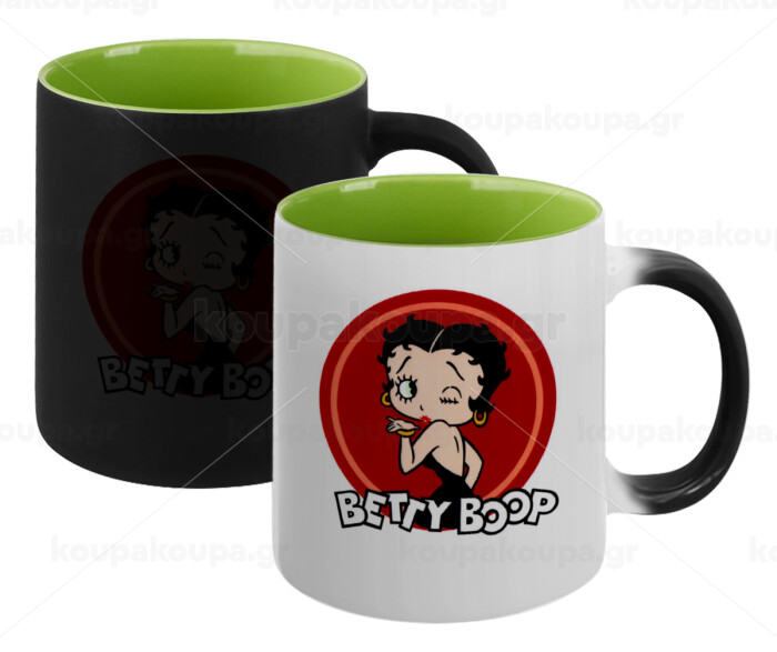 Betty Boop kiss, Κούπα Μαγική εσωτερικό πράσινο, κεραμική 330ml που αλλάζει χρώμα με το ζεστό ρόφημα