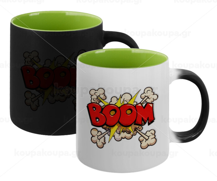 BOOM!!!, Κούπα Μαγική εσωτερικό πράσινο, κεραμική 330ml που αλλάζει χρώμα με το ζεστό ρόφημα