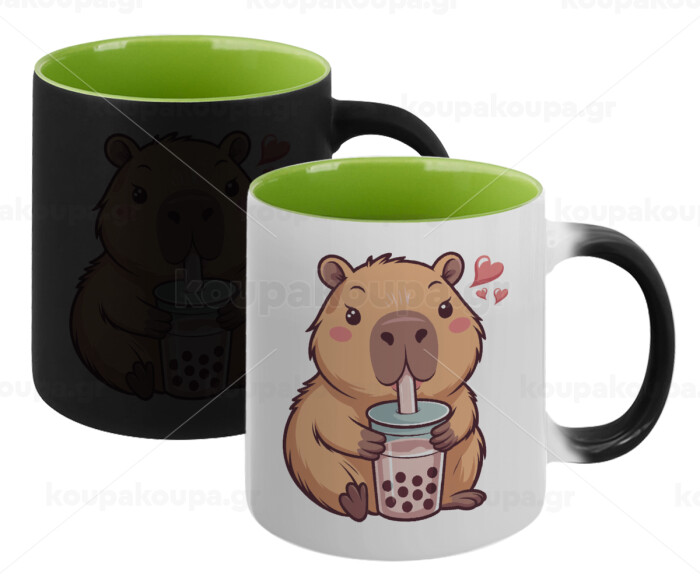 Capybara Bubble Tea, Κούπα Μαγική εσωτερικό πράσινο, κεραμική 330ml που αλλάζει χρώμα με το ζεστό ρόφημα