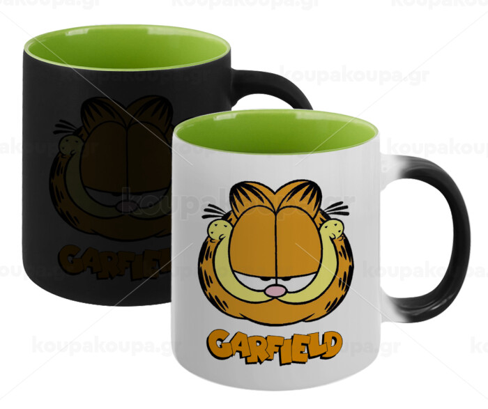 Garfield, Κούπα Μαγική εσωτερικό πράσινο, κεραμική 330ml που αλλάζει χρώμα με το ζεστό ρόφημα