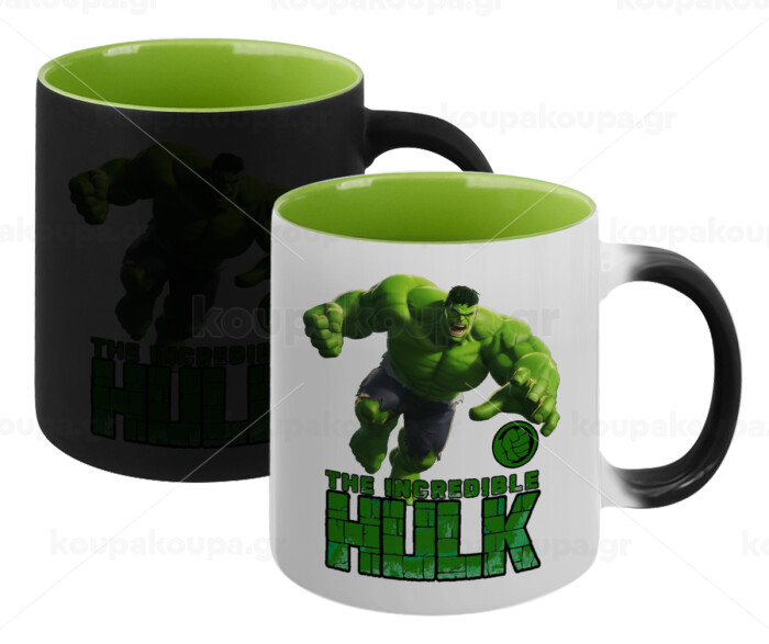 Hulk, Κούπα Μαγική εσωτερικό πράσινο, κεραμική 330ml που αλλάζει χρώμα με το ζεστό ρόφημα