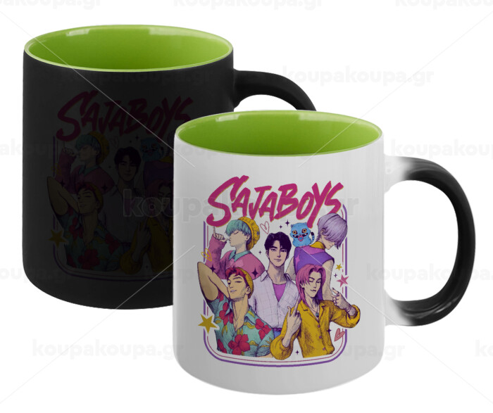 Huntrix Saja Boys, Κούπα Μαγική εσωτερικό πράσινο, κεραμική 330ml που αλλάζει χρώμα με το ζεστό ρόφημα