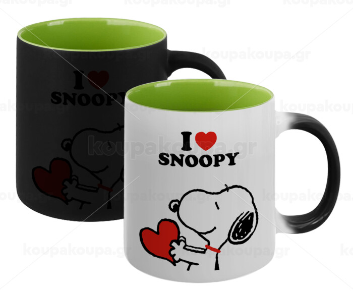 I LOVE SNOOPY, Κούπα Μαγική εσωτερικό πράσινο, κεραμική 330ml που αλλάζει χρώμα με το ζεστό ρόφημα