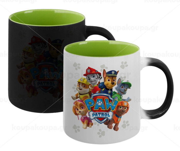 PAW patrol, Κούπα Μαγική εσωτερικό πράσινο, κεραμική 330ml που αλλάζει χρώμα με το ζεστό ρόφημα