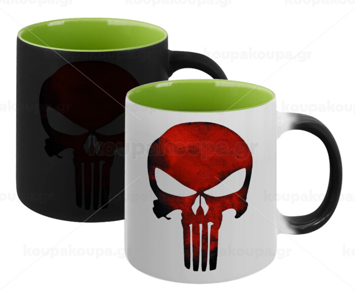 Red skull, Κούπα Μαγική εσωτερικό πράσινο, κεραμική 330ml που αλλάζει χρώμα με το ζεστό ρόφημα