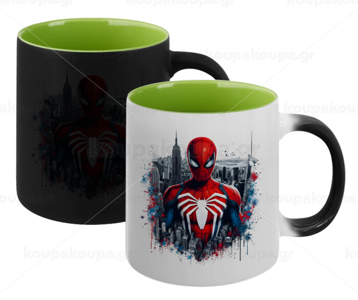 Spiderman City, Κούπα Μαγική εσωτερικό πράσινο, κεραμική 330ml που αλλάζει χρώμα με το ζεστό ρόφημα