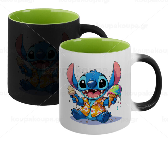 Stitch Ice cream, Κούπα Μαγική εσωτερικό πράσινο, κεραμική 330ml που αλλάζει χρώμα με το ζεστό ρόφημα
