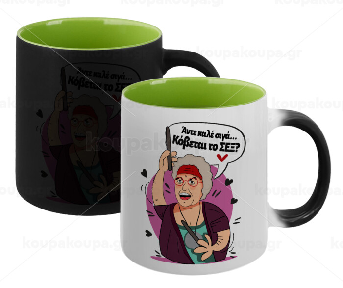 Αντε καλέ, σιγά, κόβεται το σέξ ;, Κούπα Μαγική εσωτερικό πράσινο, κεραμική 330ml που αλλάζει χρώμα με το ζεστό ρόφημα