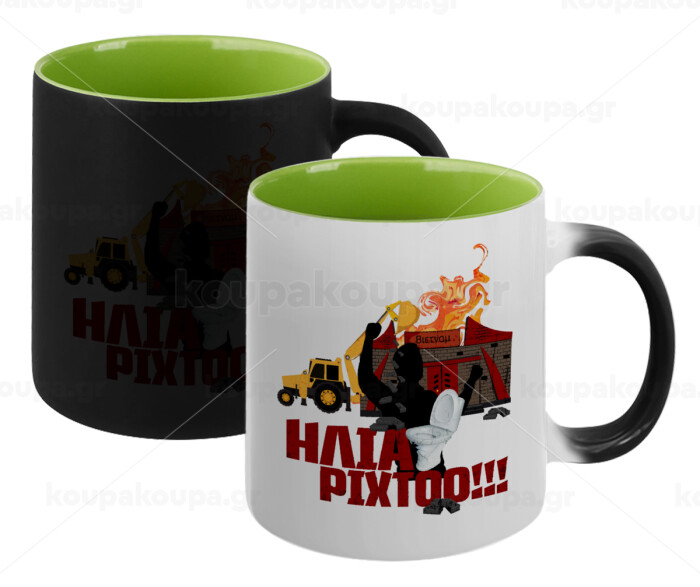 Ηλία ρίχτοοο!!!, Κούπα Μαγική εσωτερικό πράσινο, κεραμική 330ml που αλλάζει χρώμα με το ζεστό ρόφημα