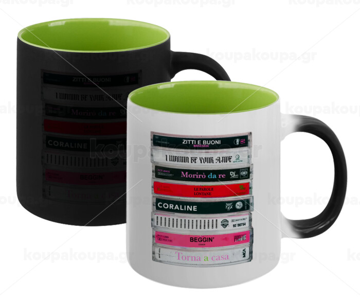 Maneskin Cassette, Κούπα Μαγική εσωτερικό πράσινο, κεραμική 330ml που αλλάζει χρώμα με το ζεστό ρόφημα