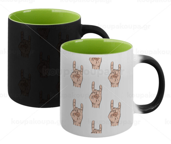 Rock hands, Κούπα Μαγική εσωτερικό πράσινο, κεραμική 330ml που αλλάζει χρώμα με το ζεστό ρόφημα