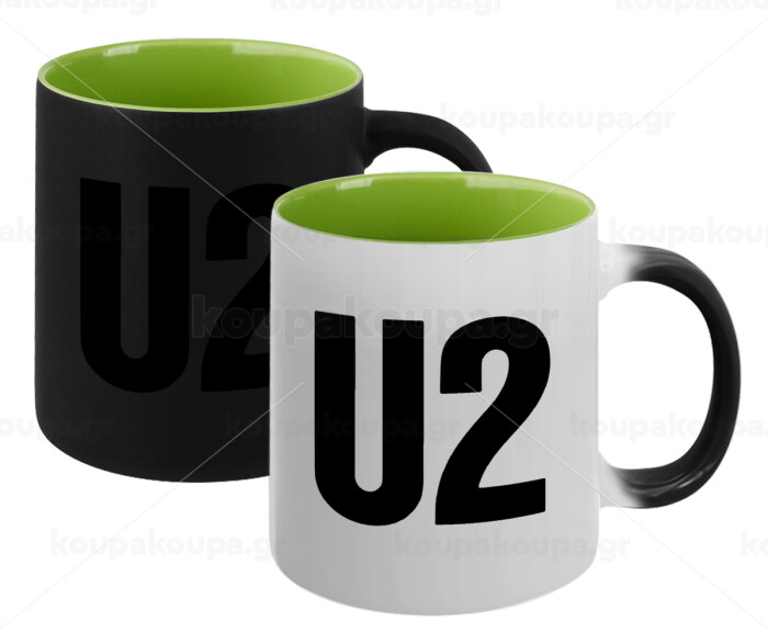 U2 , Κούπα Μαγική εσωτερικό πράσινο, κεραμική 330ml που αλλάζει χρώμα με το ζεστό ρόφημα