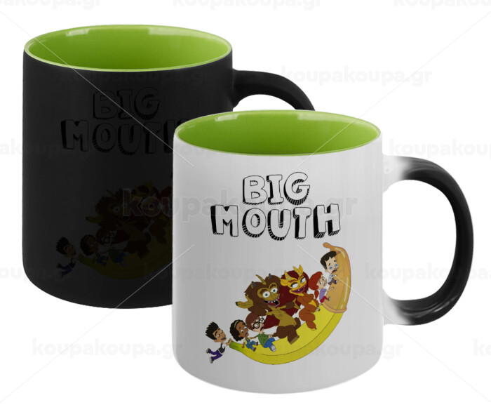 Big mouth, Κούπα Μαγική εσωτερικό πράσινο, κεραμική 330ml που αλλάζει χρώμα με το ζεστό ρόφημα