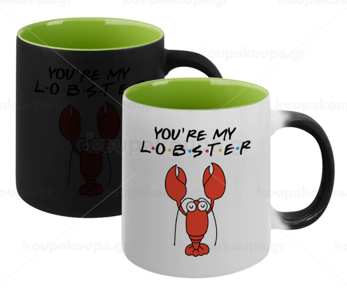 Friends you're my lobster, Κούπα Μαγική εσωτερικό πράσινο, κεραμική 330ml που αλλάζει χρώμα με το ζεστό ρόφημα