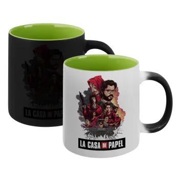 La casa de papel drawing cover, Κούπα Μαγική εσωτερικό πράσινο, κεραμική 330ml που αλλάζει χρώμα με το ζεστό ρόφημα