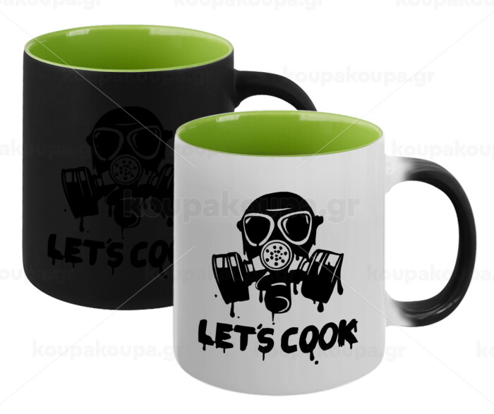 Let's cook mask, Κούπα Μαγική εσωτερικό πράσινο, κεραμική 330ml που αλλάζει χρώμα με το ζεστό ρόφημα