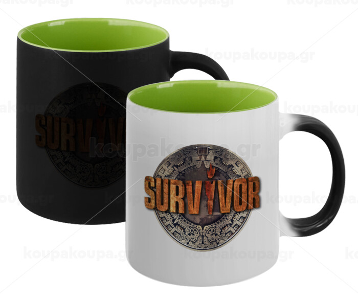 Survivor, Κούπα Μαγική εσωτερικό πράσινο, κεραμική 330ml που αλλάζει χρώμα με το ζεστό ρόφημα
