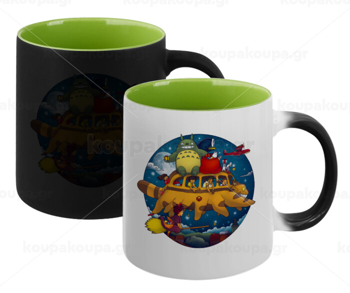 Totoro Catbus, Κούπα Μαγική εσωτερικό πράσινο, κεραμική 330ml που αλλάζει χρώμα με το ζεστό ρόφημα
