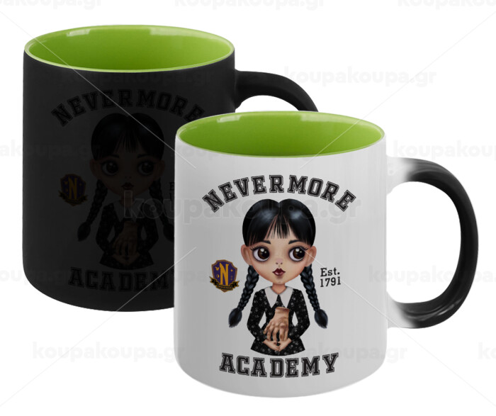 Wednesday Adams, nevermore, Κούπα Μαγική εσωτερικό πράσινο, κεραμική 330ml που αλλάζει χρώμα με το ζεστό ρόφημα