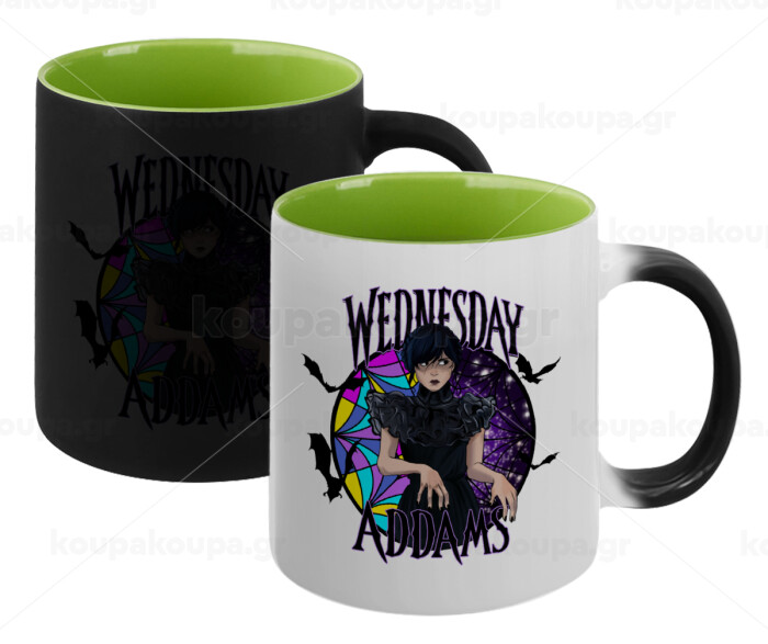 Wednesday Jenna Ortega, Κούπα Μαγική εσωτερικό πράσινο, κεραμική 330ml που αλλάζει χρώμα με το ζεστό ρόφημα