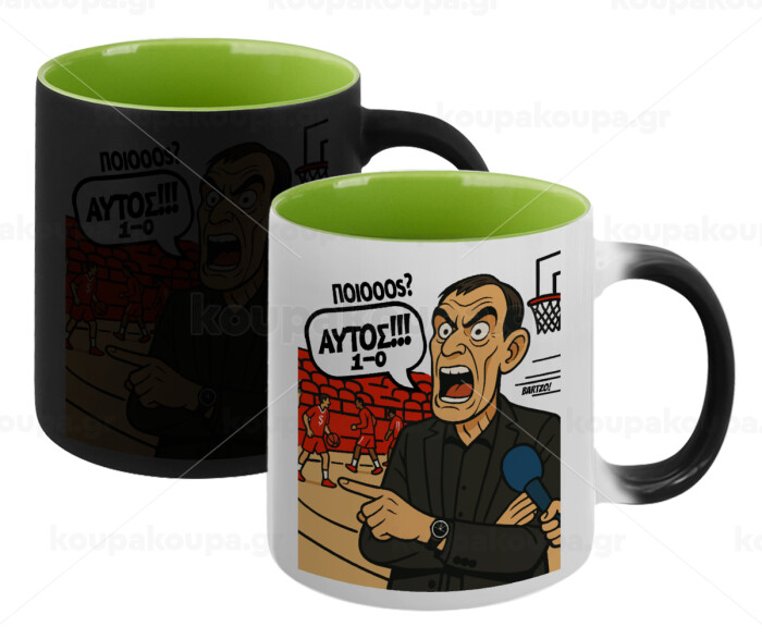 Μπαρτζό, Ποιος? Αυτός!!! 1-0, Κούπα Μαγική εσωτερικό πράσινο, κεραμική 330ml που αλλάζει χρώμα με το ζεστό ρόφημα