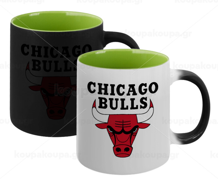 Chicago Bulls, Κούπα Μαγική εσωτερικό πράσινο, κεραμική 330ml που αλλάζει χρώμα με το ζεστό ρόφημα