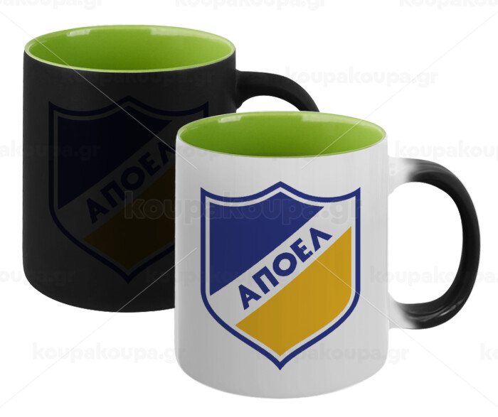 FC ΑΠΟΕΛ Λευκωσίας, Κούπα Μαγική εσωτερικό πράσινο, κεραμική 330ml που αλλάζει χρώμα με το ζεστό ρόφημα